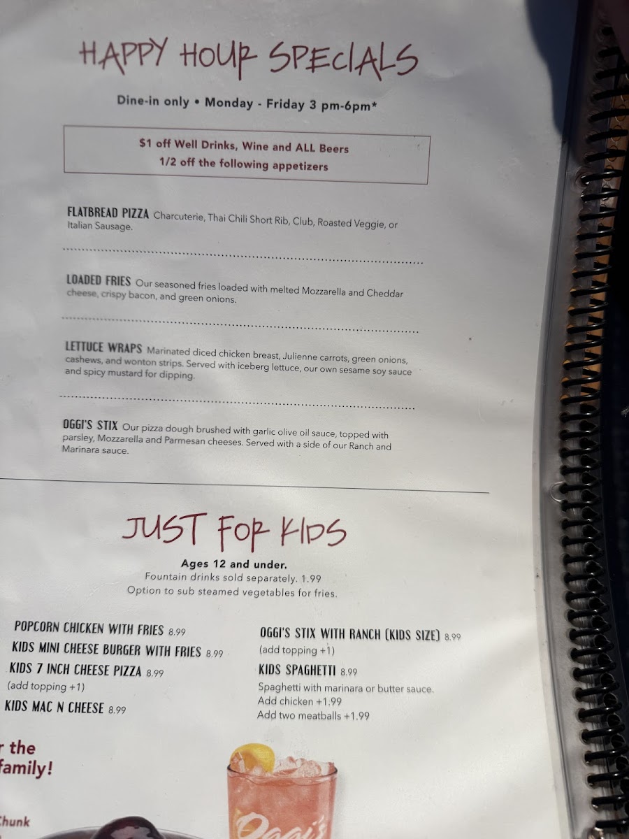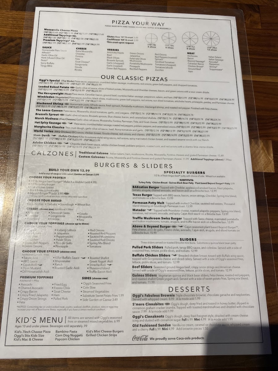 Oggi's Sports Brewhouse Pizza Menu (2025 Update)